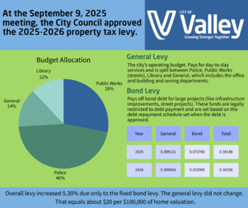 At the September 9, 2025 meeting the City Council approved the 2026 - 2026 tax levy.