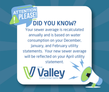Your sewer average is recalculated annually and is based on water consumption on your December, January, and February utility statements. Your new sewer average will be reflected on your April utility statement.