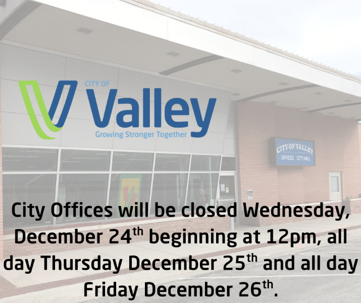 If you haven't already, don't forget to download the City of Valley app! Pay your utility bill, see our Facebook page, report citizen concerns, and more. Download for iPhone or Android.